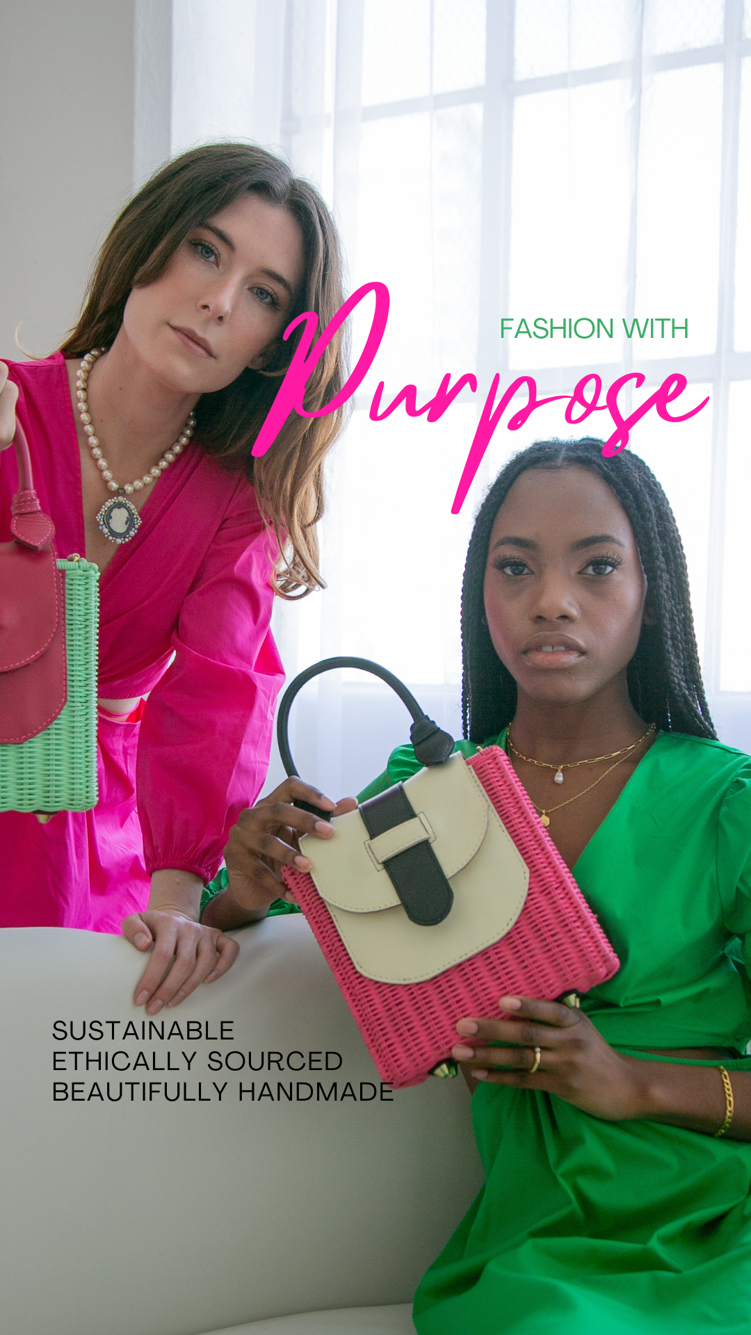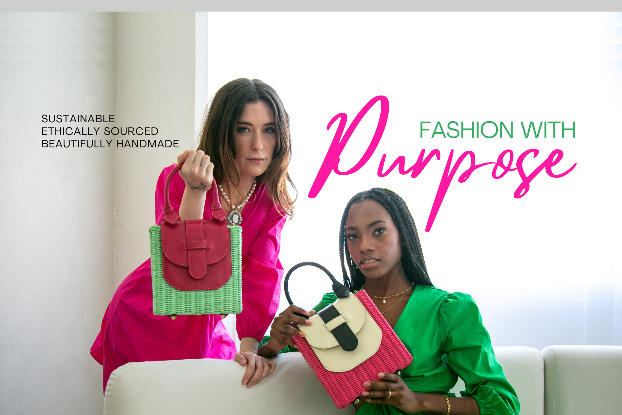 Fashion with Purpose is at the heart and soul of Everina. Based in Los Angeles, we value sustainability and ethical souring. In partnership with female artisans in Indonesia, Everina’s gorgeous straw bags are made with eco-friendly materials, such as rattan and tropical grass. Everina's founders are a husband and wife, Indonesian and American duo. Emelie, one of our founders, are born and raised in Indonesia where our handbags are made.